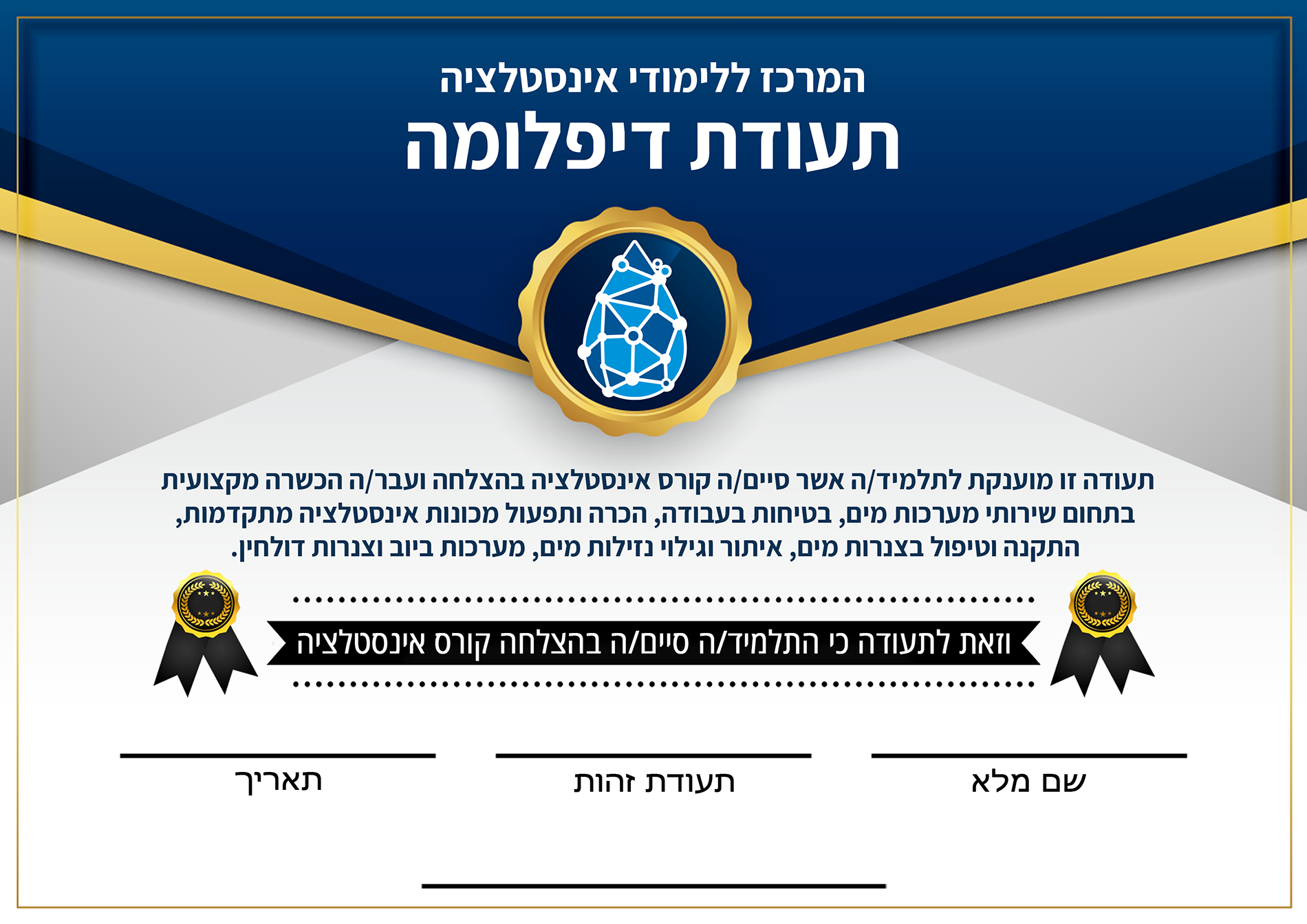 המרכז ללימודי לאינסטלציה הינו בית ספר המקנה כלים ומיומנויות בקשת רחבה של נושאים הקשורים לתורת האינסטלציה. הקורס מורכב מלימודים בשיטה מקוונת, המשלבת גם שיטת לימוד מעשי בו הלומד מתרגל בכיתת לימוד. המרכז ללימודי לאינסטלציה שם לעצמו דגש בשיטת לימוד אישי, שיטה בה הלומד מתרגל יחד עם המורה בצורה פרטנית תוך התחשבות בקצב ההבנה של הלומד. המרכז ללימודי לאינסטלציה מתחשב בשונות תלמידיו ,ובקצב הלימוד שלהם. הסילבוס של הקורס כולל נושאי לימוד נרחבים בתחום האינסטלציה כגון: מערכות מים, בטיחות בעבודה, הכרה התקנה וטיפול בצנרות מים, איתור וגילוי מים, מערכות ביוב, צנרות דולחין ועוד נושאים רבים אחרים עליהם נרחיב במהלך הקורס. אנו מאמינים כי לימוד קורס אינסטלציה של המרכז ללימודי אינסטלציה מקנה ללומד את מגוון הכלים הפרקטיים והמקצועיים המאפשרים לו להתמודד עם פרויקטים בזמן אמת בשטח.